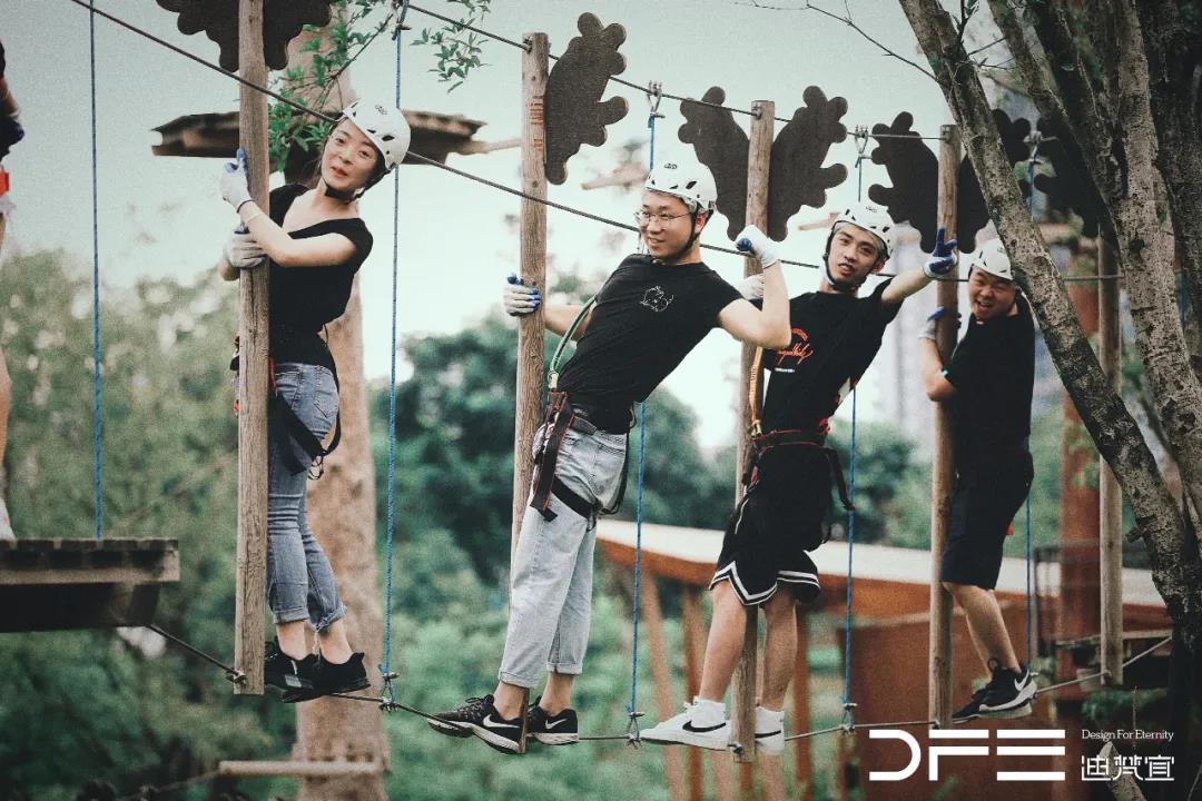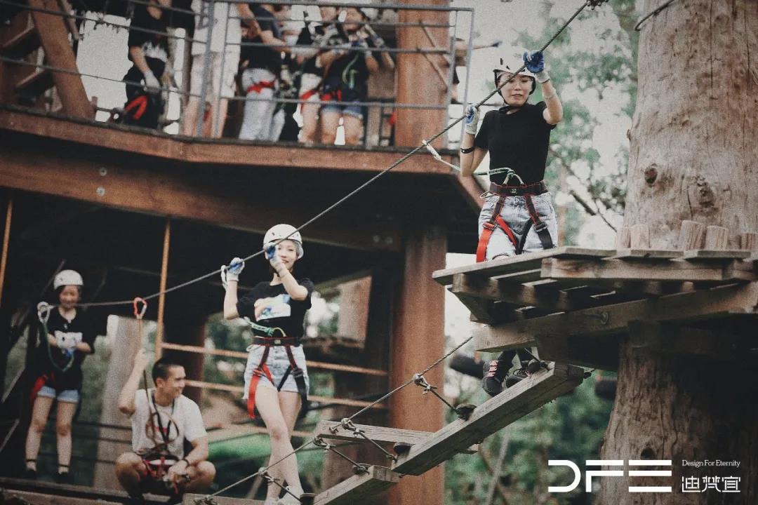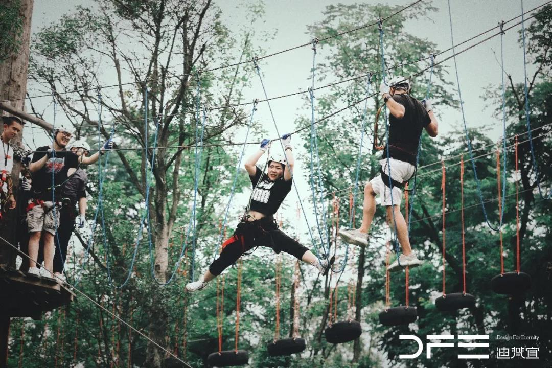 本次團建場地由麓湖.麓客島傾情提供,“穿越叢林”通過在林間設置并搭建各種難易不同、風格回異、刺激的關卡,感受在樹上攀爬與林間探險的刺激!